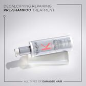 A dual-action decalcifying and repairing pre-shampoo treatment for damaged hair. The Concentré Décalcifiant Ultra-réparateur removes calcium and reinforces hair strength, leaving it stronger, smoother, and shinier.