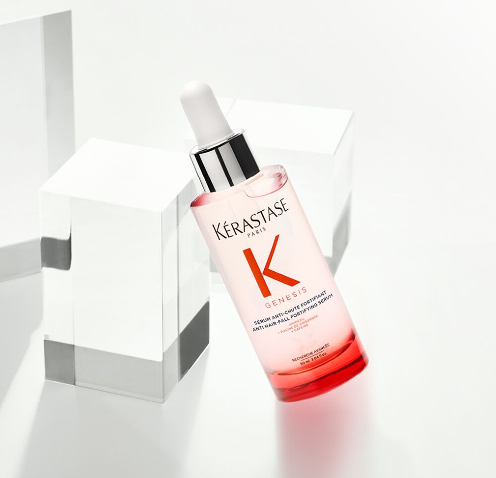 Genesis Anti-Hairfall Serum is a daily scalp serum that minimises hair loss after 6 weeks of use*. It boosts resistance at the scalp, strengthening hair day after day. Enriched with a potent combination of Aminexil, Edelweiss Native Cells and Ginger Root, this lightweight, silicone-free serum targets and re-anchors hair follicles more solidly into the scalp to minimise breakage. Dual action care reduces hair fall and strengths hair from the roots, preventing breakage