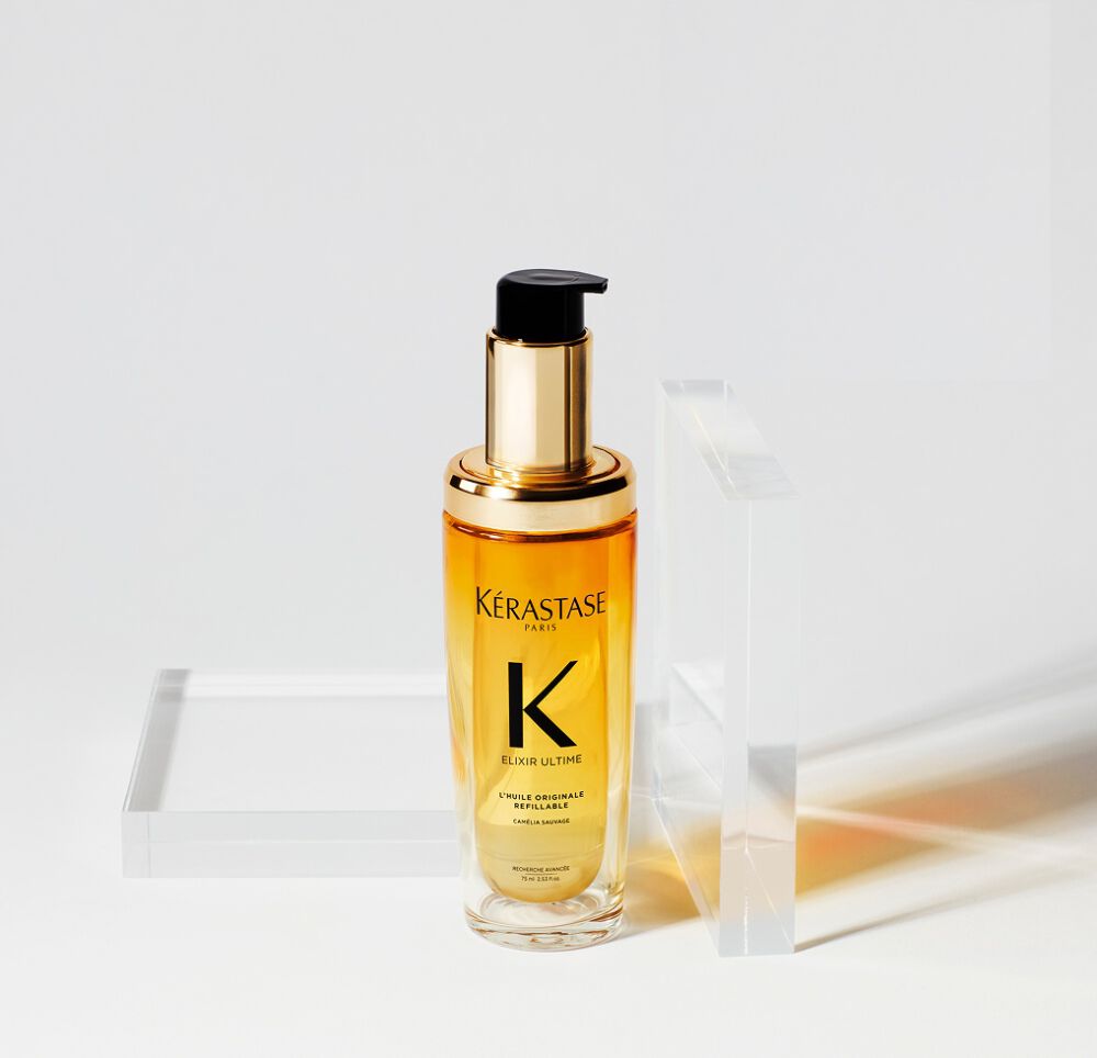 Treat yourself to the ultimate luxury hair oil-in-serum with Kérastase Elixir Ultime, now refillable*. Enriched with the finest ingredients, including wild Camellia and French Camellia, each drop is a deeply luxurious oil treatment for all hair types.