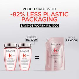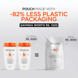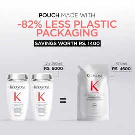 82% less plastic than 2 single-use 250ml shampoo bottles**.